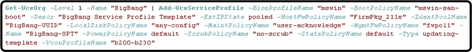 1. An example PowerShell line (create Service Profile Template – 1st PS line):